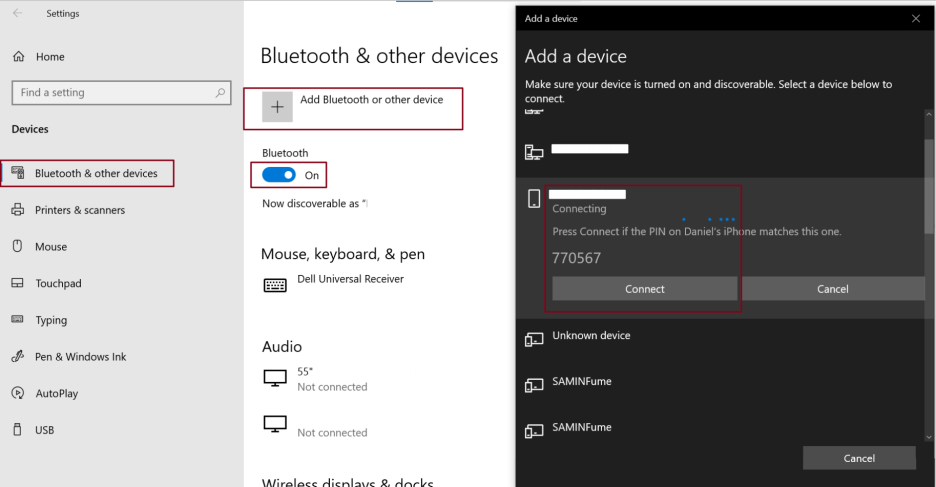 - Turn on Bluetooth on both your PC and your Bluetooth device (e.g., smartphone).