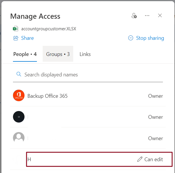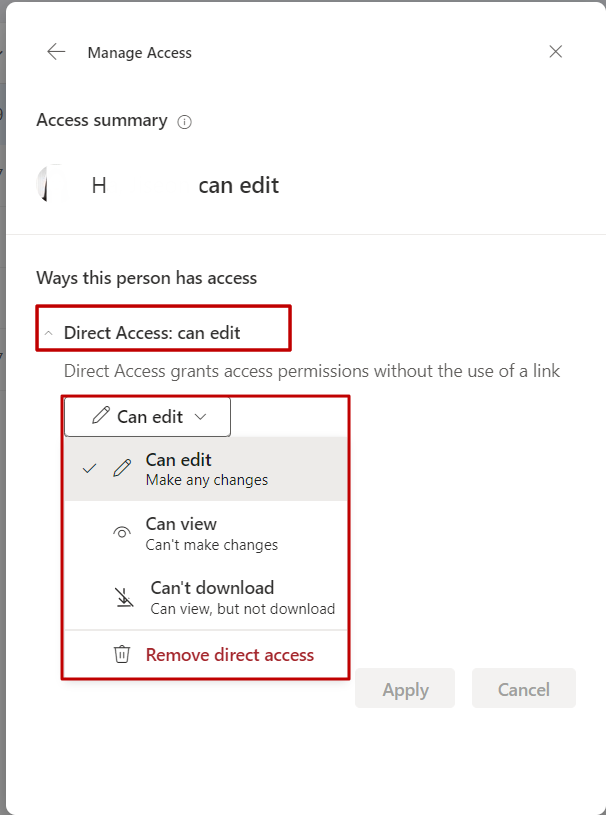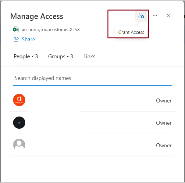 In the Manage Access pane, you'll see a detailed view of who has access to the file, whether they can view, edit, or share it further.