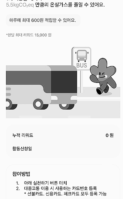 - 자전거 타기 & 대중교통 이용: 걷기 외에도 자전거를 타거나, 대중교통을 이용하면 포인트를 받게 됨