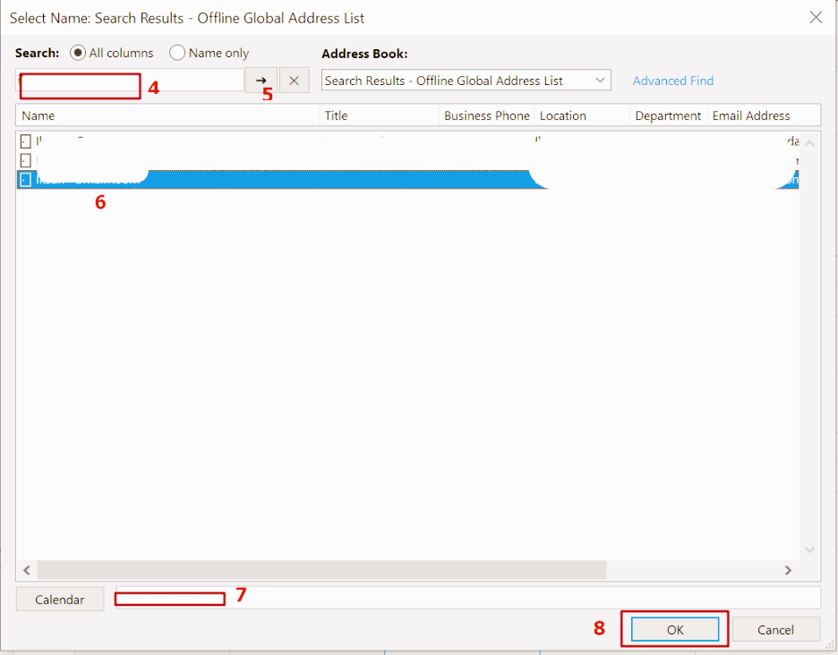 9. Shared Calendars 영역에 선택한 회의실이 포함이 되고