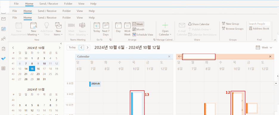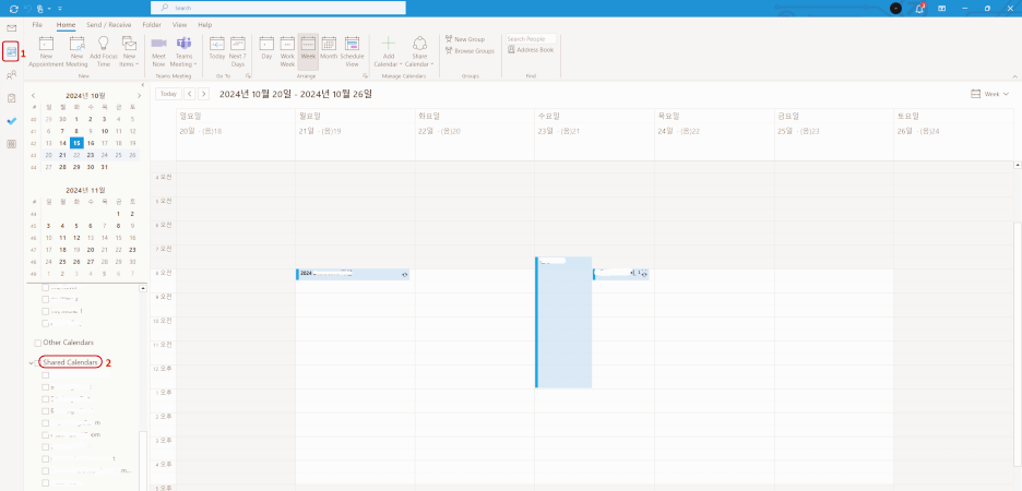 - Outlook Application을 Open 후 Calendar 아이콘을 Click 한다