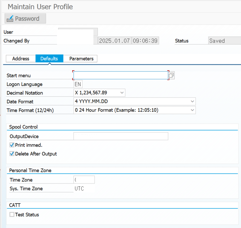 1) 사용자 프로필(User Profile)에서 설정 변경 (SAP T-Code: SU3)