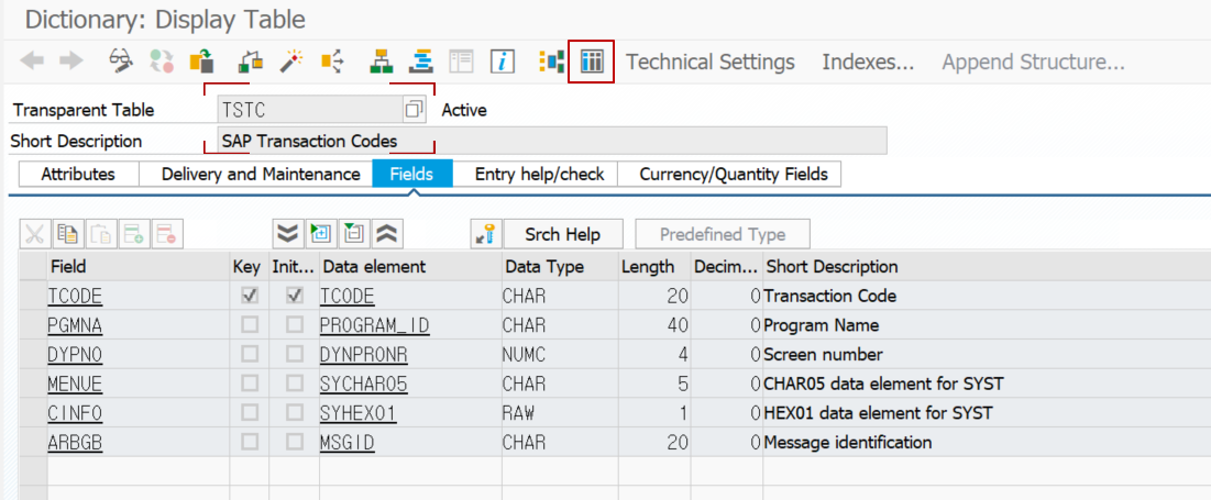 4. SE11 (TSTC 테이블) 활용하여 트랜잭션 코드 검색