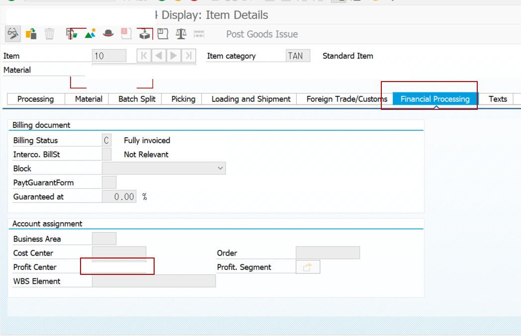 - 만약 배송 문서(Delivery Document) 가 관련된 경우(출고 처리 포함), 해당 문서에서도 손익 센터가 영향을 받을 수 있다.