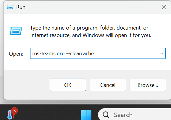 - Win + R 키 누르고 ms-teams.exe --clearcache 입력 후 Enter