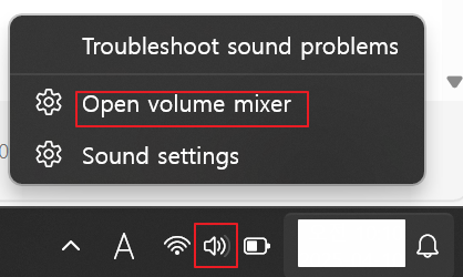 - 작업 표시줄의 볼륨 아이콘 우클릭 → 소리 설정(Sound settings)