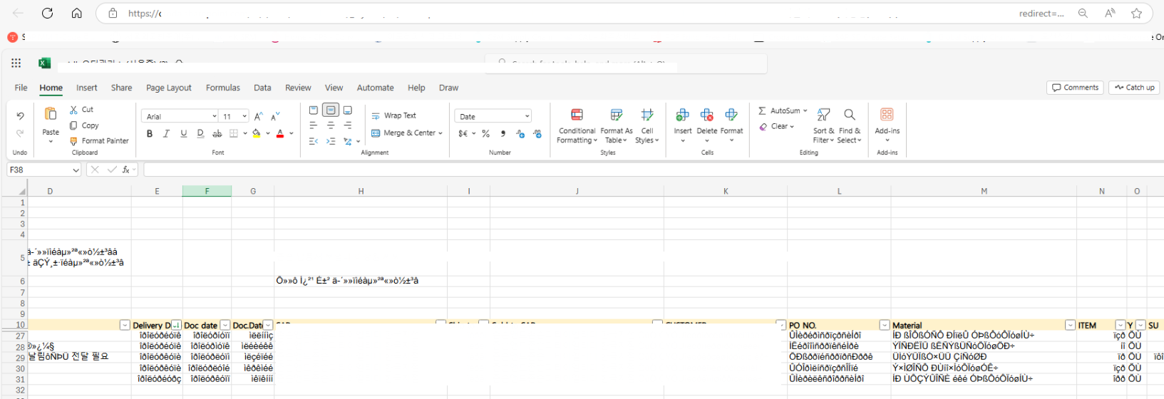 회사에서 Excel 파일을 웹브라우저(Excel Online) 로 열었더니, 일부 텍스트나 숫자가 깨지거나 이상하게 보이는데 같은 파일을 엑셀 데스크탑 앱으로 열면 멀쩡한 경우가 많다.
