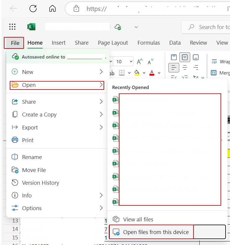 - Excel Online에서 파일 > 데스크탑 앱에서 열기 선택