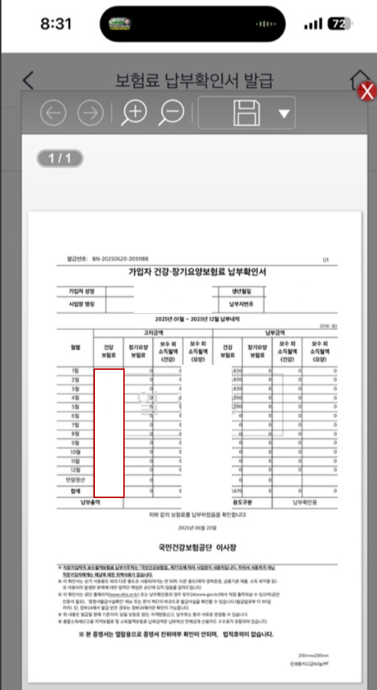 - 보험료 납부확인서에서 건강보험료 확인