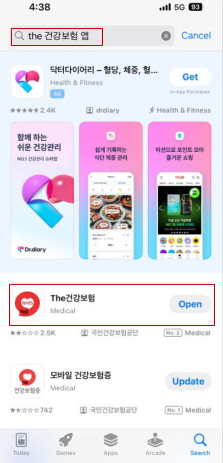 본인의 건강보험료를 확인하기 위해 모바일 폰에 The건강보험 앱을 설치하여 건강보험료를 확인해 보자.