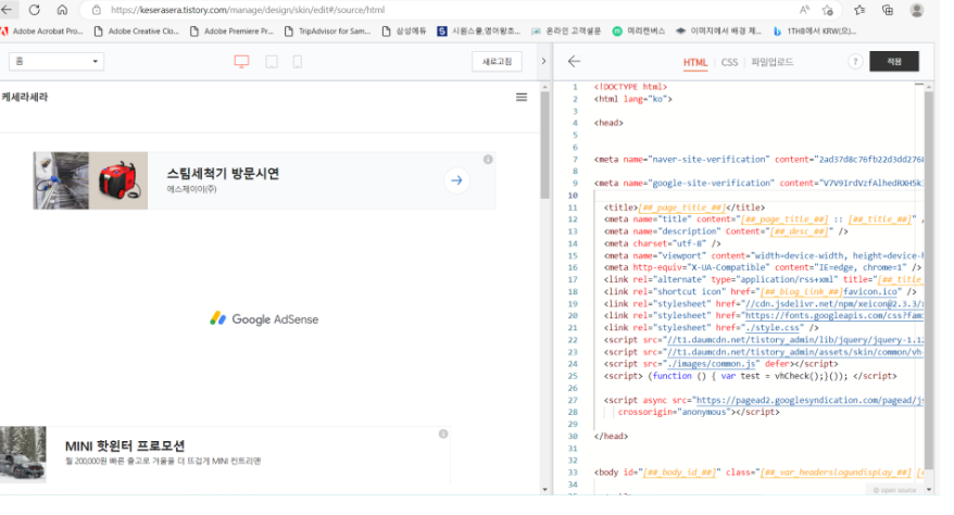 2. 티스토리 관리자 > HTML 편집