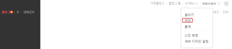 - 블로그 관리 접속: 본인 블로그로 접속 후, '관리' 메뉴를 클릭