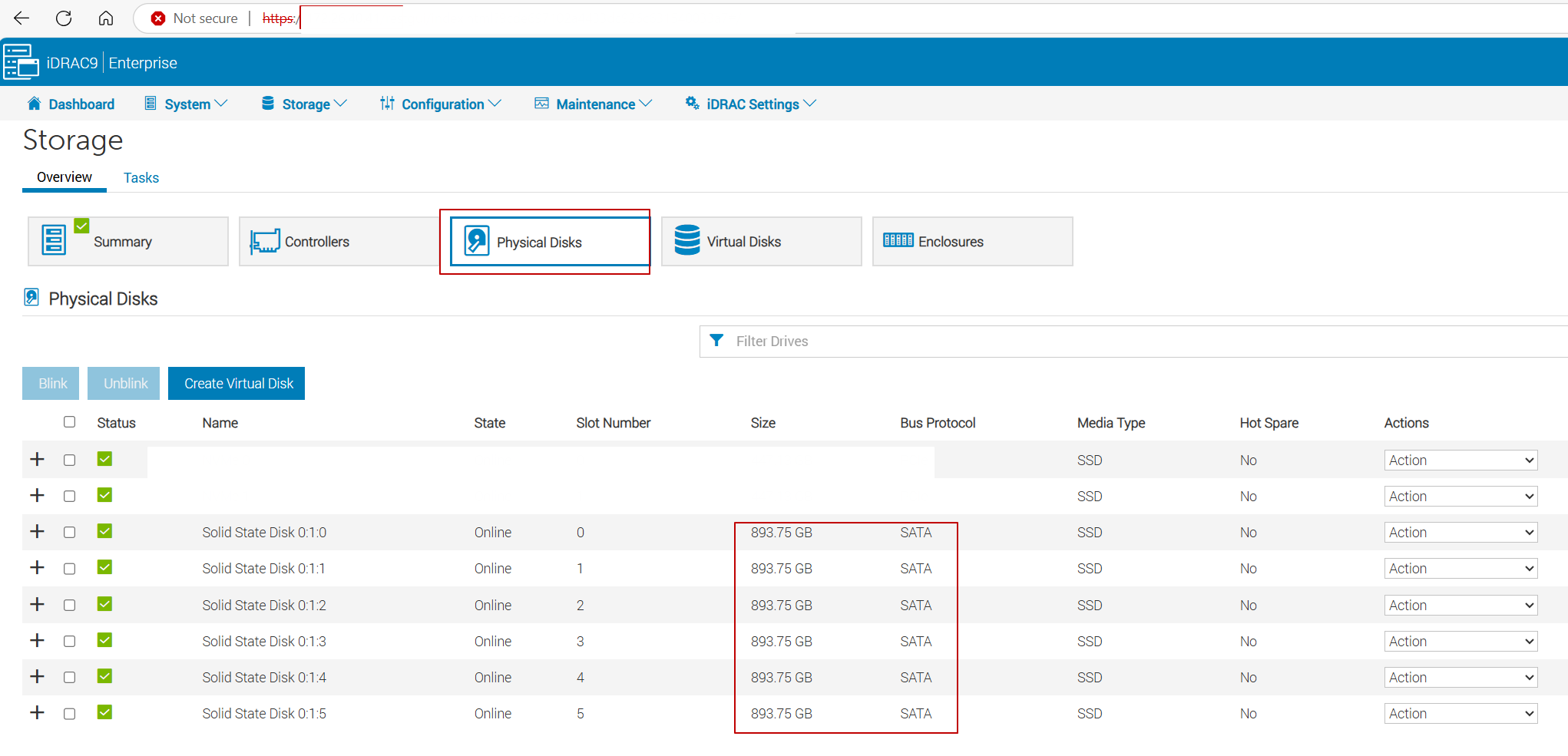 이제 iDRAC 인터페이스를 통해 실제로 물리 디스크 추가 및 용량 확장을 진행해 보자.